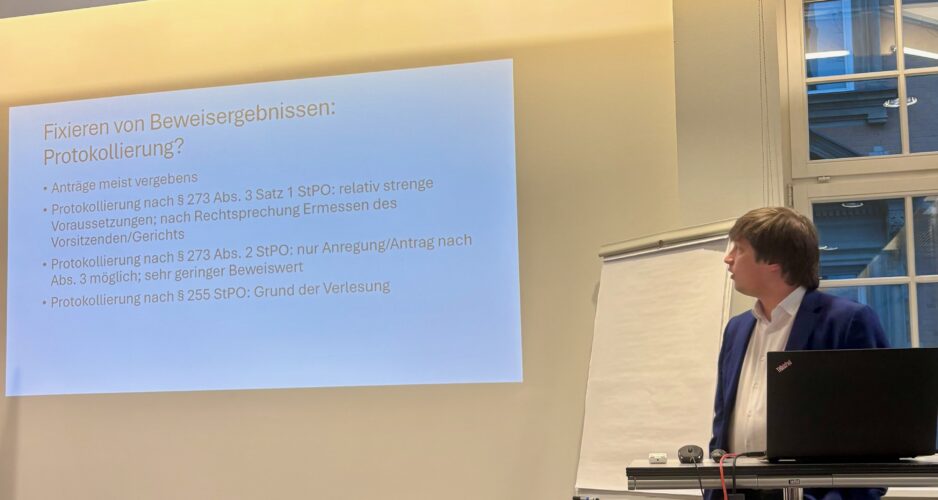 Im Mittelpunkt stand die (Un)Möglichkeit, für die Glaubhaftigkeitsfrage relevante Beweisergebnisse in der Hauptverhandlung für die Revision zu fixieren. Dr. Seel ist dabei auf typische Verfahrenskonstellationen wie die Verlesung von Vernehmungsprotokollen oder die Entfernung des Angeklagten eingegangen und hat gezeigt, dass optimale Verteidigung in der Hauptverhandlung oft nicht deckungsgleich mit optimaler Verteidigung für eine spätere Revision ist.Am Ende stand der Befund, dass sich gerade in solchen Konstellationen die massiven Dokumentationsmängel und die irrationalen Elemente des deutschen Strafverfahrens besonders deutlich zeigen.